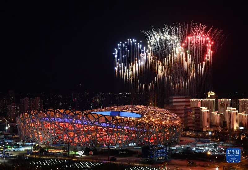 2月4日,第二十四届冬季奥林匹克运动会开幕式在北京国家体育场举行。这是当晚的焰火表演。新华社记者 李鑫 摄