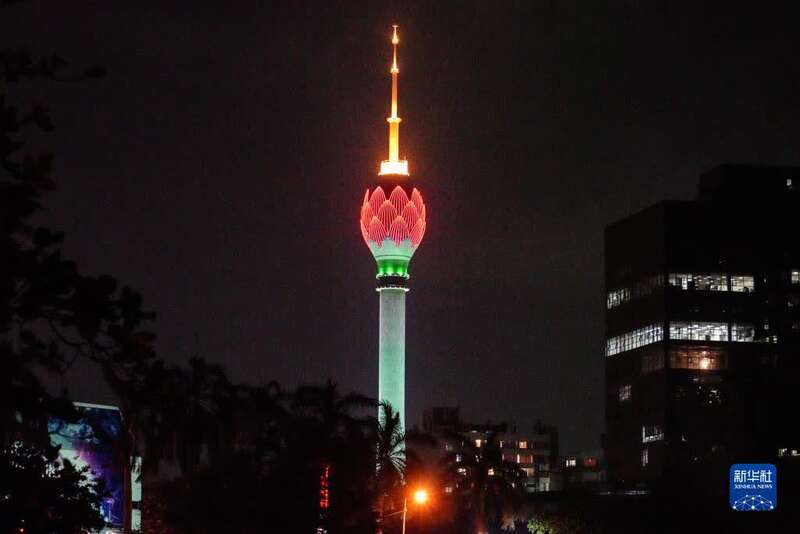 这是1月31日在斯里兰卡科伦坡拍摄的点亮“中国红”的莲花电视塔。新华社记者 唐璐 摄