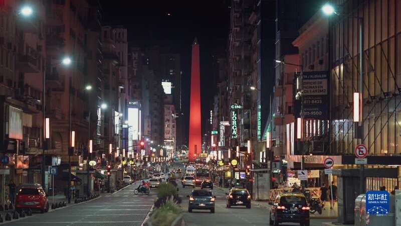 这是1月31日在阿根廷首都布宜诺斯艾利斯拍摄的亮起“中国红”的方尖碑。新华社发(第四届“中国春节文化之旅”主办方供图)
