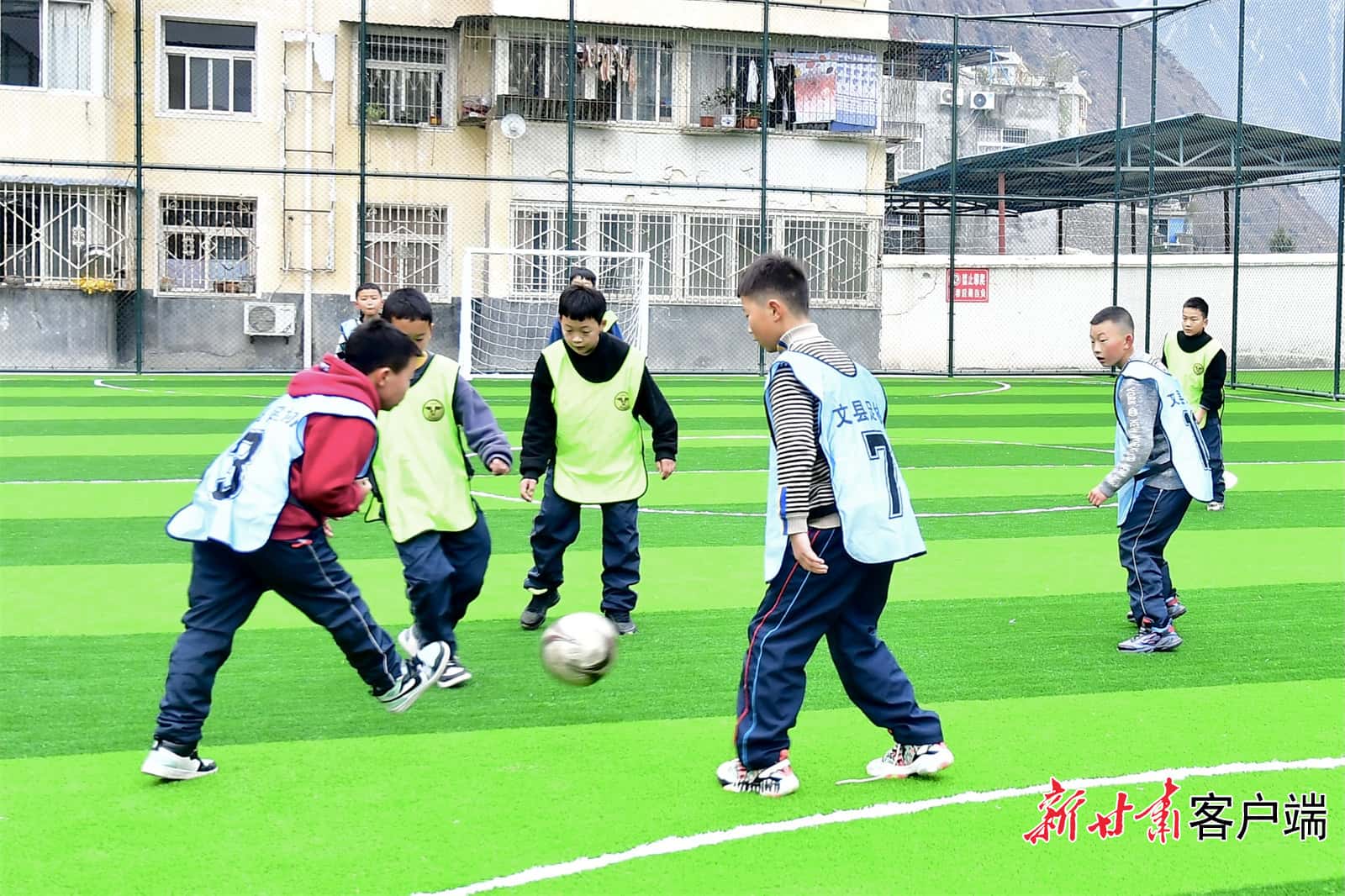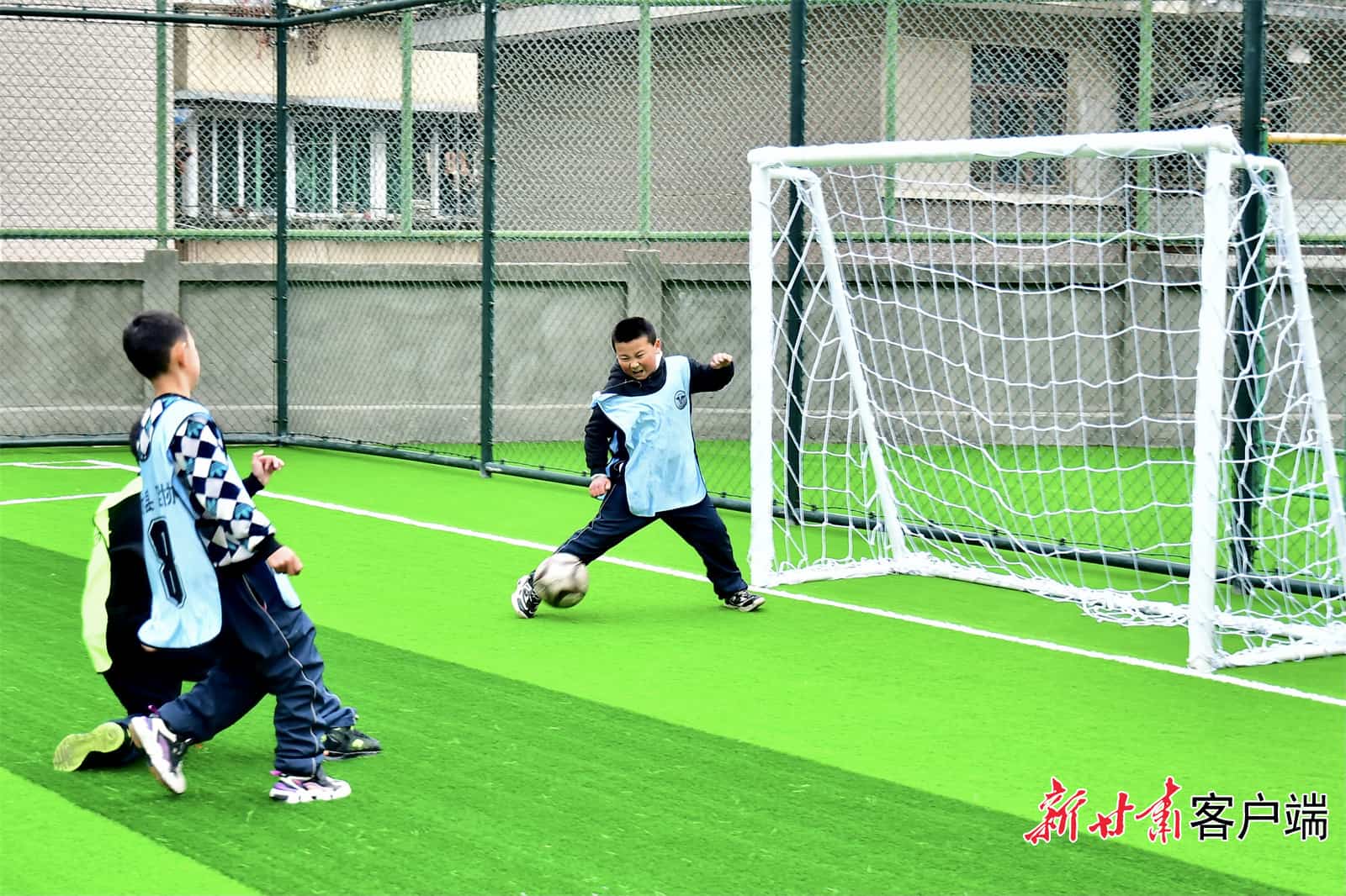 过人、传球、射门 !农历腊月二十,年关将至,文县东坝中学足球场上,鲜亮、崭新的绿色里,几位少年正在奔跑、欢畅。