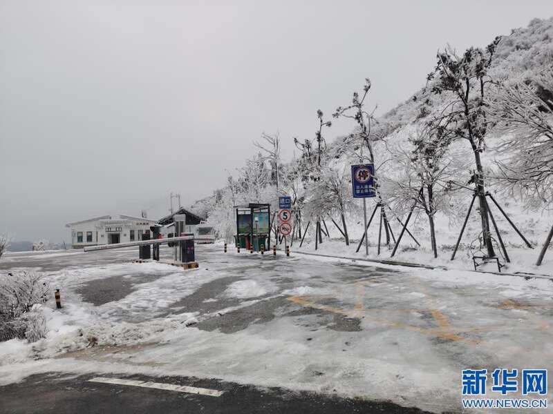 近日,江西南昌的梅岭景区出现大范围降雪天气过程,景区道路出现不同程度的结冰。新华网发