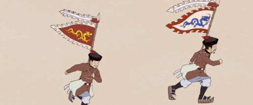 悬的演射:八旗按服色,上三旗在前,下五旗在后,一名士卒执小旗作为前导,本旗参赛士卒执弓矢随行于后,盘旋曲折行于冰道之上。远远望去,蜿蜒如龙,故称为“转龙”。