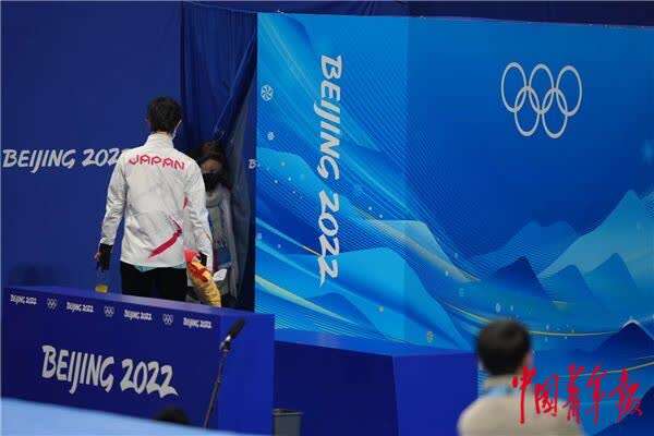 北京冬奥会花样滑冰男子单人滑自由滑正在进行,日本选手羽生结弦的比赛刚刚结束,他在比赛中试图挑战被称为是人类不可能完成的阿克塞尔四周跳(4A),也被称为是“四周半”,但未能成功。作为之前两届冬奥会花滑男单的冠军得主,羽生结弦是本届冬奥会花滑赛场上最受关注的明星之一,由于在短节目比赛中出现失误,羽生结弦已经很难在本届冬奥会上实现花滑男单三连冠,但这位世界级巨星依然希望在北京留下了永载花滑历史的一跳,虽然未能成功,但羽生结弦挑战极限和挑战自我的精神依然令人尊敬,这也是他深受全世界冰迷喜爱的原因之一。(中青报·中青网记者 慈鑫/文 李隽辉/摄)