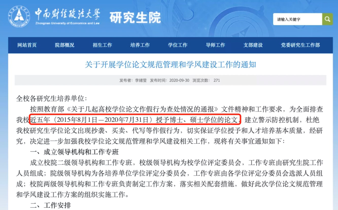 已经毕业的研究生也不能掉以轻心,部分学校还会倒查近五年的博士、硕士学位论文。