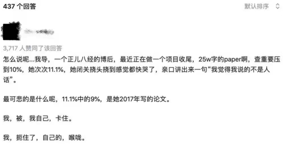 图丨某网友的分享:导师11.1%的查重率中有9%是她自己的论文