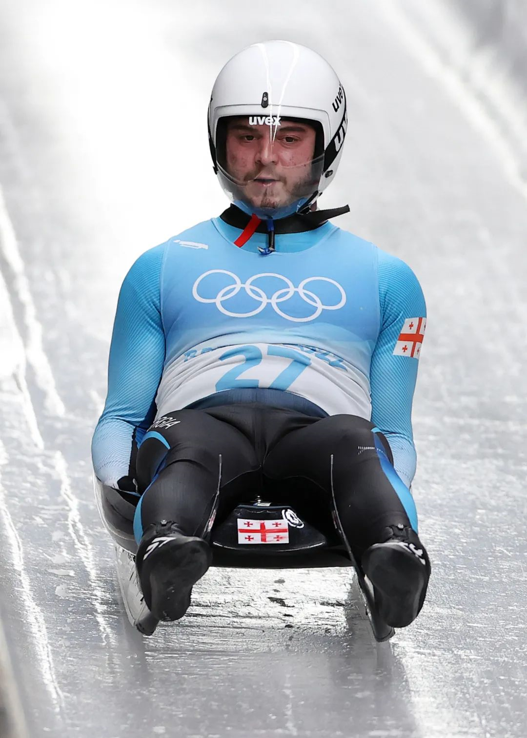 格鲁吉亚选手萨巴·库马里塔什威利在比赛中(2月5日摄)。新华社记者 姚剑锋 摄