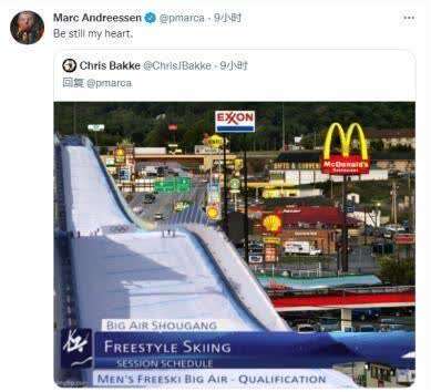 被“科普”后,马克•安德里森并没有解释自己的意图,但在随后的推文中,马克•安德里森又连续发了几张经过编辑的图片,给首钢滑雪大跳台的旁边p上了其他建筑。↓