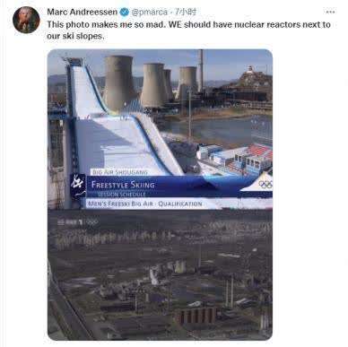 “这张照片让我很生气。我们也应该在滑雪场旁边建核反应堆。”在北京时间8日谷爱凌在首钢滑雪大跳台夺冠这天,美国网景通讯公司创始人马克•安德里森在推特上发了大跳台的照片,还配了这样一句话。在评论区,很多网友在教育他的“无知”,而他随后发布了几张恶搞照片,不知道是不是为了化解尴尬。