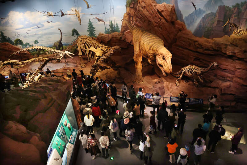 澄江化石地自然博物馆还展示了来自非洲、美洲的标本,以及草原、雨林、极地、湿地等动物的生活场景。 刘屹/摄影