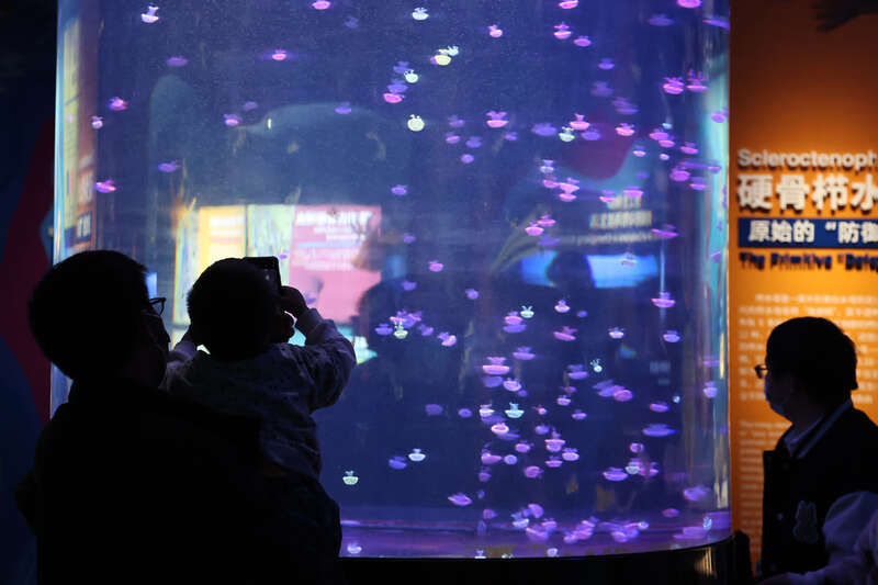 澄江化石地自然博物馆内的水母活体养殖缸。 刘屹/摄影