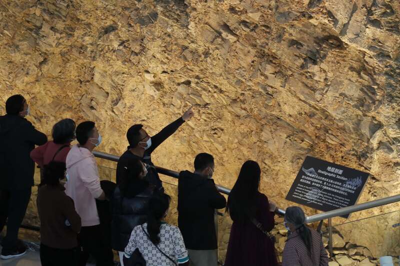 澄江化石地自然博物馆收藏的古生物化石让游客大开眼界。 刘屹/摄影