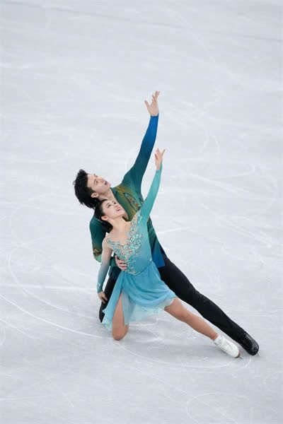 青峰叠嶂,浮云绿水。伴随着《功夫钢琴》的东方韵律,中国选手王诗玥、柳鑫宇身着“青山绿水”,在7日举行的花样滑冰团体赛冰舞自由舞比赛中,尽显中国式冰雪浪漫。