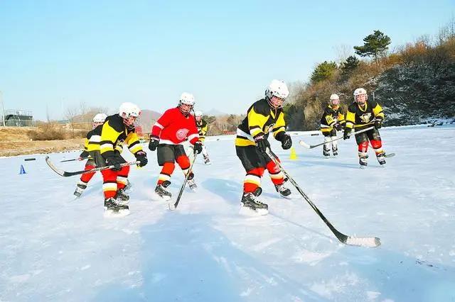 打冰球队是项比较昂贵的运动,场地、装备、教练等必要条件都花费不菲,对山区小学来说样样都是难题。为此,学校因地制宜,利用山区温度低、冬季冰期长的地理条件将天然河道打造成免费冰场,多方协助集资为孩子免费提供15套入门级冰球装备,由北师大退休体育老师义务当教练……