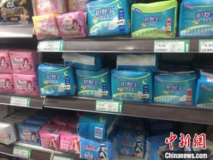 超市里售卖的各式卫生巾。 中新网 左宇坤 摄