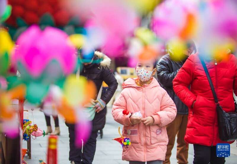 2月10日,家长陪伴孩子在南京夫子庙景区选购花灯。新华社发(孙忠南摄)