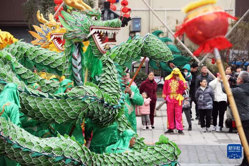 2月10日,人们在浙江省湖州市德清县乾元镇观看舞龙表演。新华社发(倪立芳摄)