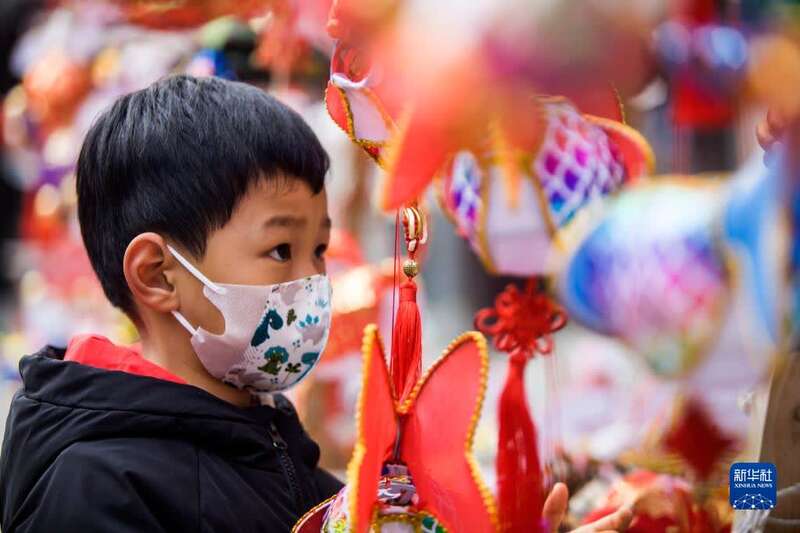 2月10日,一名孩子在南京夫子庙景区选购花灯。新华社发(孙忠南摄)