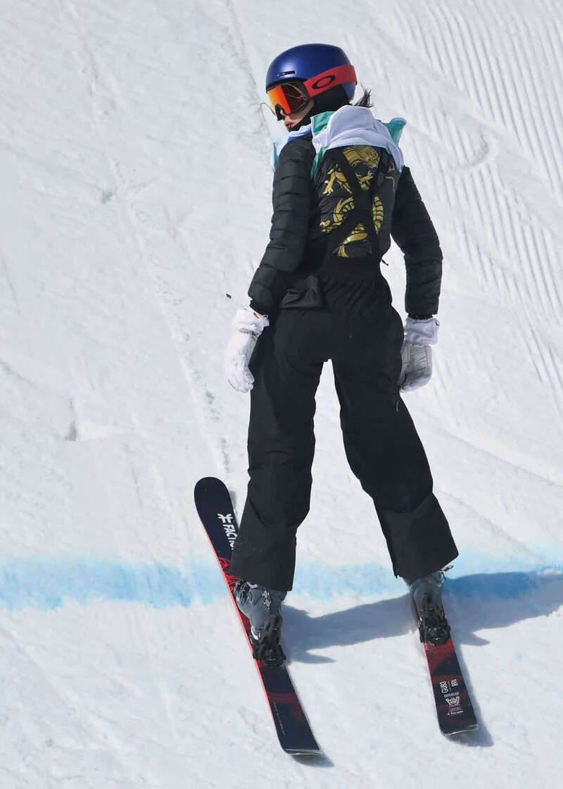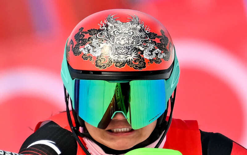 高山滑雪运动员孔凡影盔上饰龙