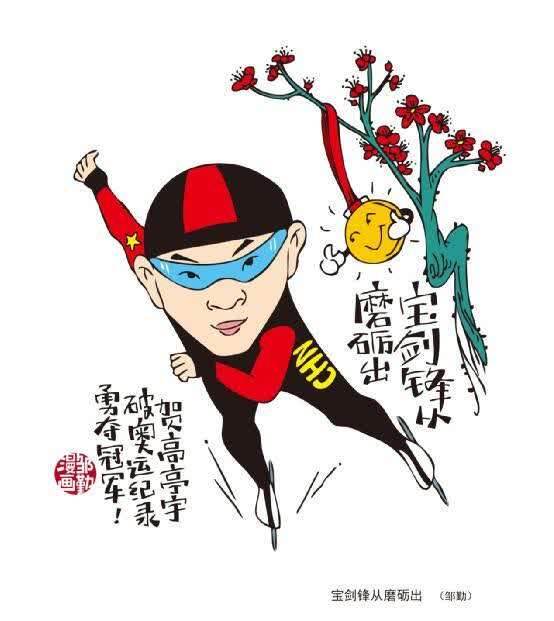上海国际传媒港举行的“沪上漫画家绘冬奥”主题创作,邀请了沪上8位知名漫画家,共同围绕北京冬奥会赛程实时热点展开即兴创作。四年前,首次参加冬奥会的高亭宇在拿到铜牌时说道:“虽然颜色差不多,可是意义完全不一样”。如今,高亭宇奖牌换金色的愿望达成了!上海的漫画家们也以书画表达了对高亭宇愿望达成的祝贺。