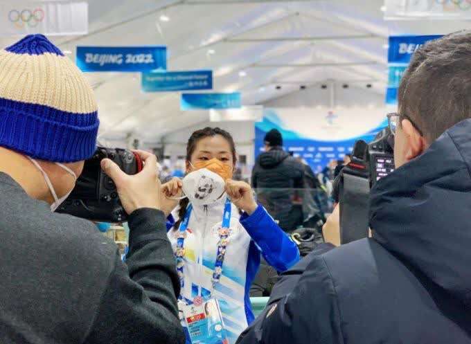 韩哲彬画的“冰墩墩”吸引了很多外国记者的注意。“好几个记者举着相机对着我拍,属实是紧张了,手心都出了汗。”生活中活蹦乱跳的韩哲彬,面对记者的镜头竟然羞涩了起来。当她把一个个“冰墩墩”口罩送给各国记者,大家十分喜欢,更有一位日本记者惊呼“Magic!”