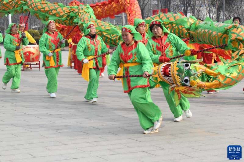 2月12日,人们在河北省邯郸市广平县举行的元宵节群众民俗文化展演活动中表演舞龙。新华社发(程学虎 摄)