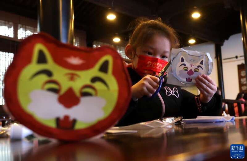 2月12日,在江苏苏州博物馆合作培训部教室,体验者在制作花灯。新华社发(杭兴微 摄)