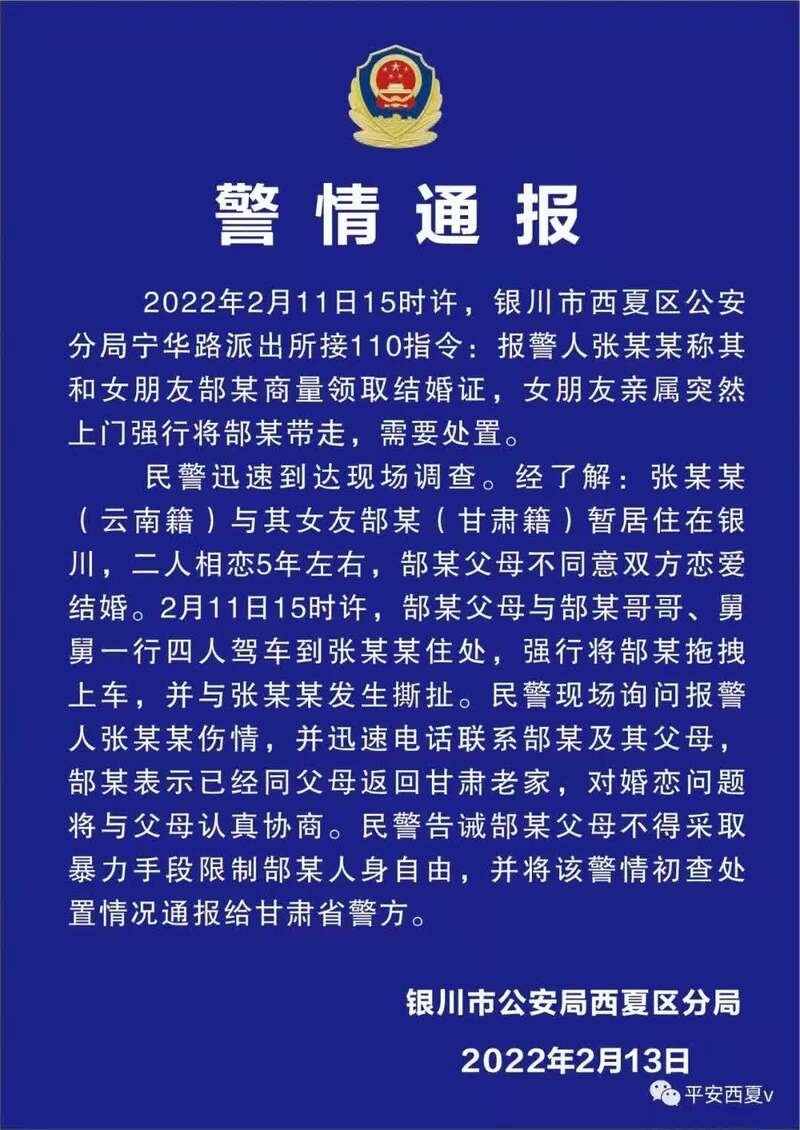 男子拿不出50万彩礼女友被拖走?宁夏银川警方发布通报