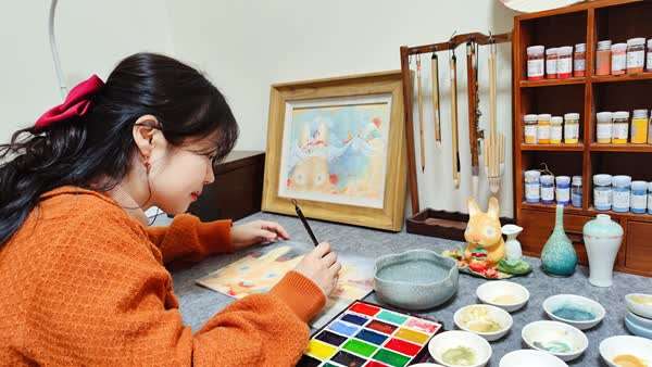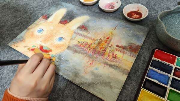 杨慧文:我在后续的创作中可能会继续围绕瓷器主题,但也可能会有新的故事诞生,但是我们的小主角阿兔会一直作为故事的主人公,陪伴着我,也陪伴着大家。在绘制的材料上我会继续采用岩彩绘画,不仅仅是源自于我对岩彩的喜爱,也是希望这曾经在敦煌壁画中闪烁璀璨光芒的中国艺术可以通过绘本的方式被更多人知晓。