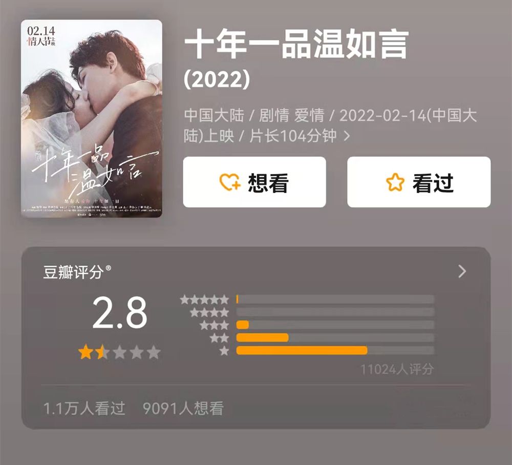 唉,怎么评价这部情人节档票房领跑的《十年一品温如言》呢,大概是,预感到它大概会烂,但没想到可以这么烂。