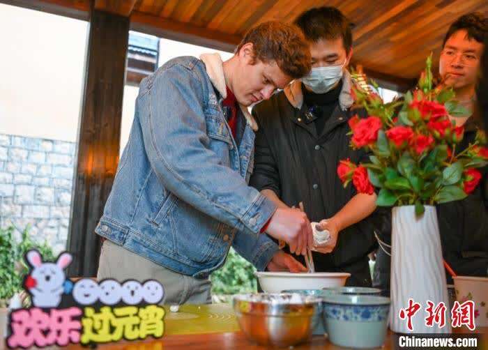 “年到元宵灯火燃,龙腾狮舞夜难眠。满帘花影月三五,一碗汤圆情万千。”在纵情感受一番冰雪项目后,Akmal和一群侨乡青年在铜铃山镇工作人员带领下,一起体验了诗句中描绘的元宵民俗。