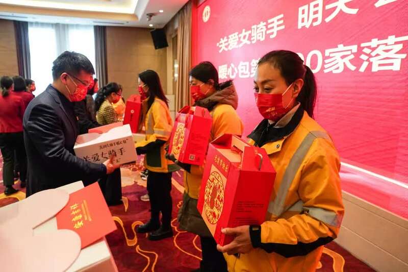 2021年12月24日,全国总工会女职工委员会、北京市总工会女职工委员会、美团公司联合启动了“关爱女骑手明天‘会’更‘美’”活动。目前,该项目已在全国5000家美团外卖合作配送站点及党群服务中心、户外劳动者驿站落地,覆盖全国185个城市,为全行业外卖女骑手提供暖心服务。