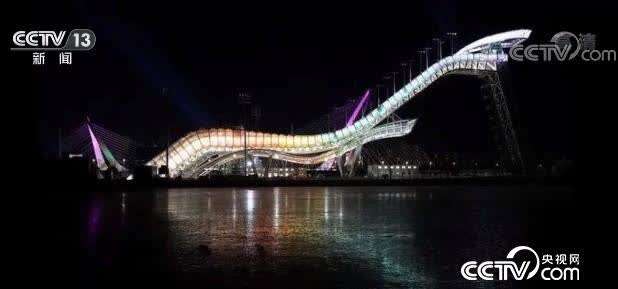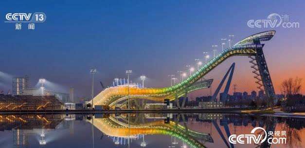 白天有赛事时,首钢滑雪大跳台万人瞩目,而在夜晚的五彩灯光中,它也是别样美丽。
