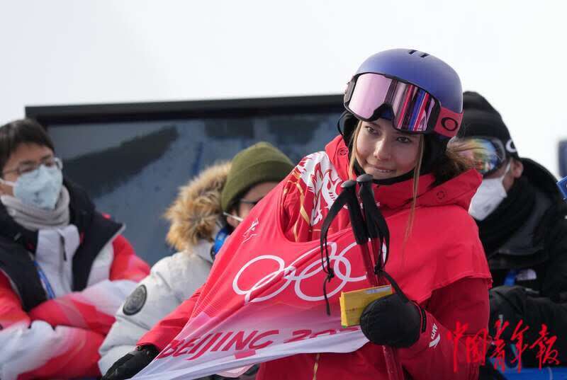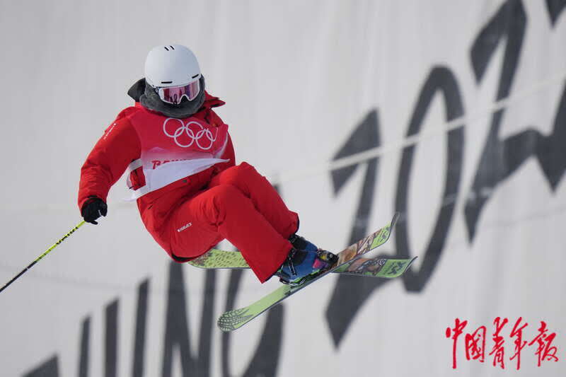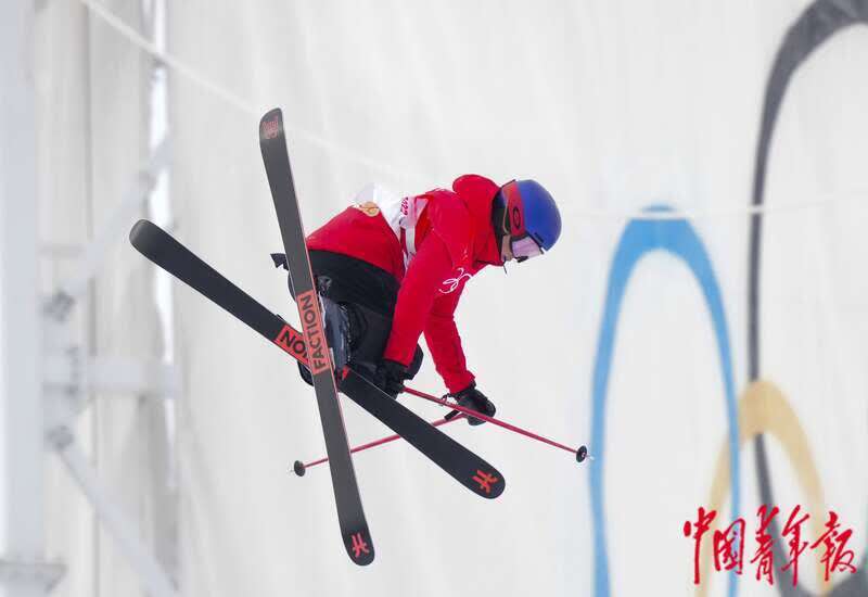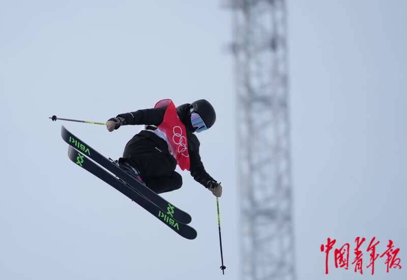 2月17日,北京2022年冬奥会张家口赛区,自由式滑雪女子U型场地技巧资格赛上,李方慧以第七名进入明天的决赛。中青报·中青网记者 李峥苨/摄