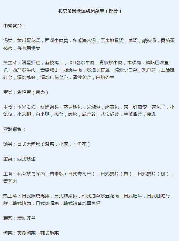 延庆冬奥村运行主任宋雪莹表示,这份菜单经过近四年的开发,旨在满足运动员不同的饮食需求,同时考虑到宗教多样性。