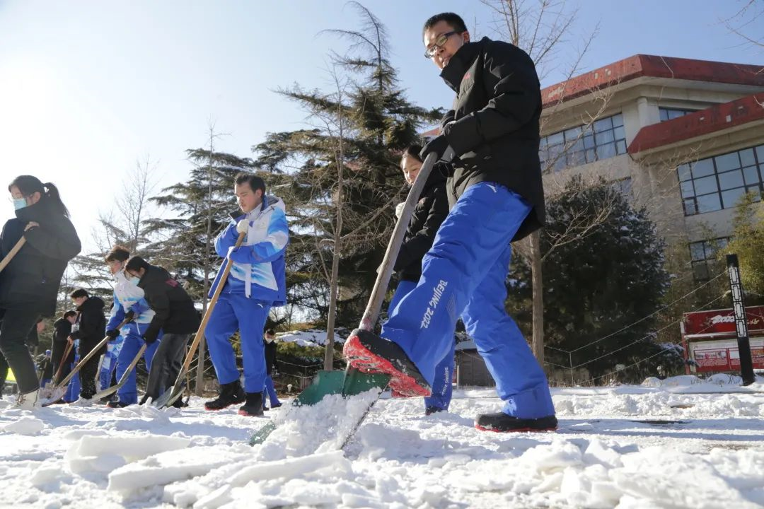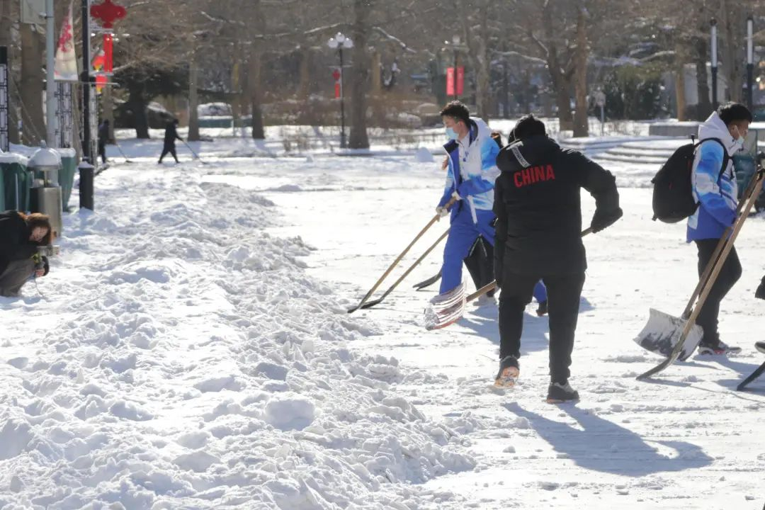 虎年第一场大雪纷纷扬扬洒落在校园中,一脚踩进去没过脚腕的积雪,为法大师生带来冰雪的盛宴。14日下午,为防止积雪及道路结冰影响法大师生的正常出行与体育运动,冬奥志愿者“党员先锋岗”成员开展清雪活动,近40名师生参与其中,圆满完成宪法大道积雪清理。