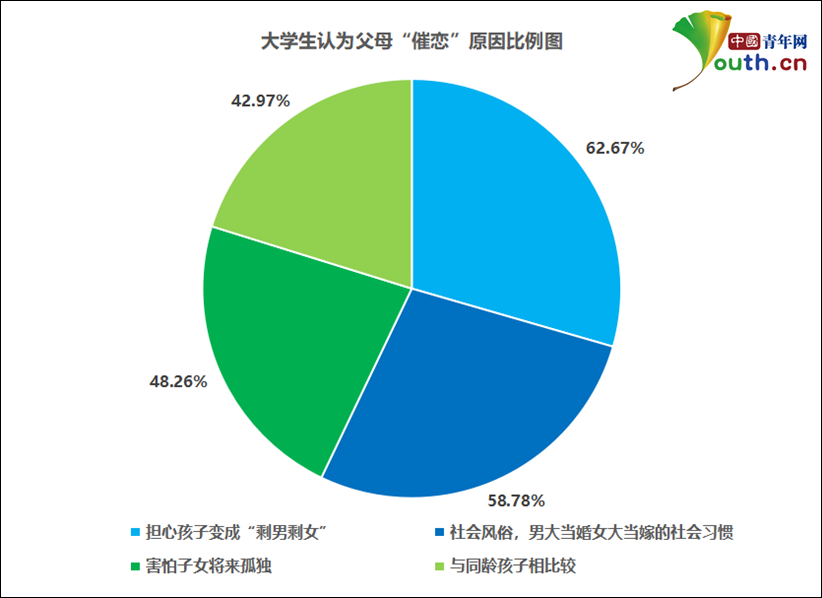 大学生认为父母“催恋”原因比例图。中国青年网记者 李华锡 制图