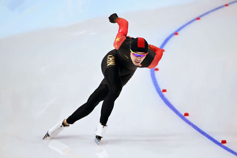 2月8日,中国队选手宁忠岩在北京冬奥会速度滑冰男子1500米决赛中。新华社记者王建威摄