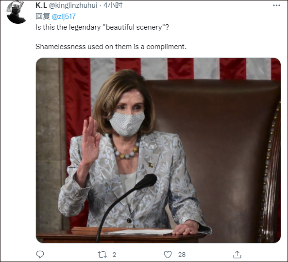 说到“双标”,有网友想到了另外一位“典型”——美国众议院议长佩洛西。