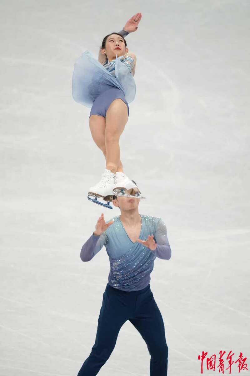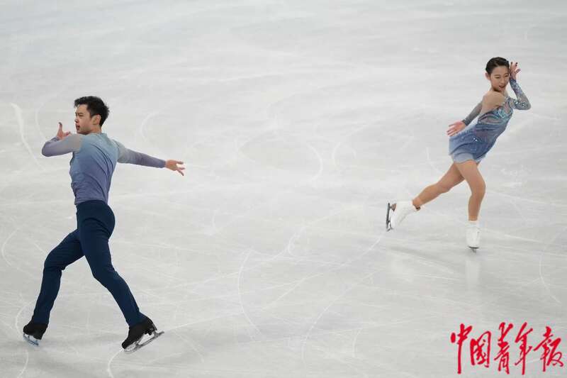 一曲《钢琴与我》的旋律动感激昂,在全场观众鼓掌打点的助威下,中国选手彭程/金杨完美发挥,得到76.10分。北京冬奥会花样滑冰双人滑短节目的比赛正在进行,今晚第14对出场的中国选手彭程/金杨目前暂居第一位。这是彭程/金杨组合第二次参加冬奥会,也是彭程的第三次冬奥会。在彭程/金杨的比赛之后,中国选手隋文静/韩聪今晚将在第17对出场。(中青报·中青网记者慈鑫/文,李隽辉/摄)