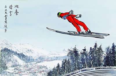 跳台滑雪(中国画) 万骁