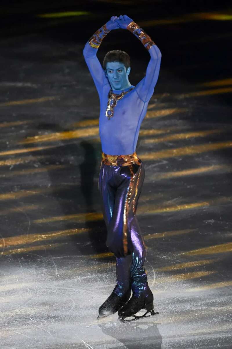 2月20日,格鲁吉亚选手莫里西·克维捷拉什维利在表演滑中。新华社记者 马宁 摄