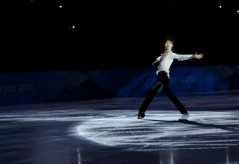 2月20日,日本选手羽生结弦在表演滑中。新华社记者 张玉薇 摄