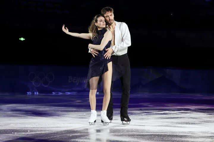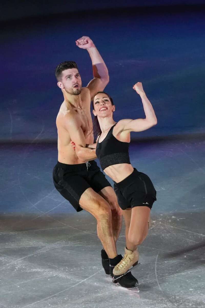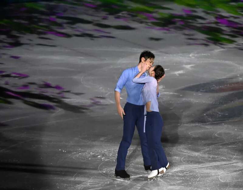 2月20日,法国选手加布丽埃拉·帕帕达基斯(左)和纪尧姆·西泽龙在表演滑中。新华社记者 张玉薇 摄