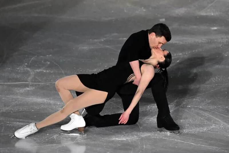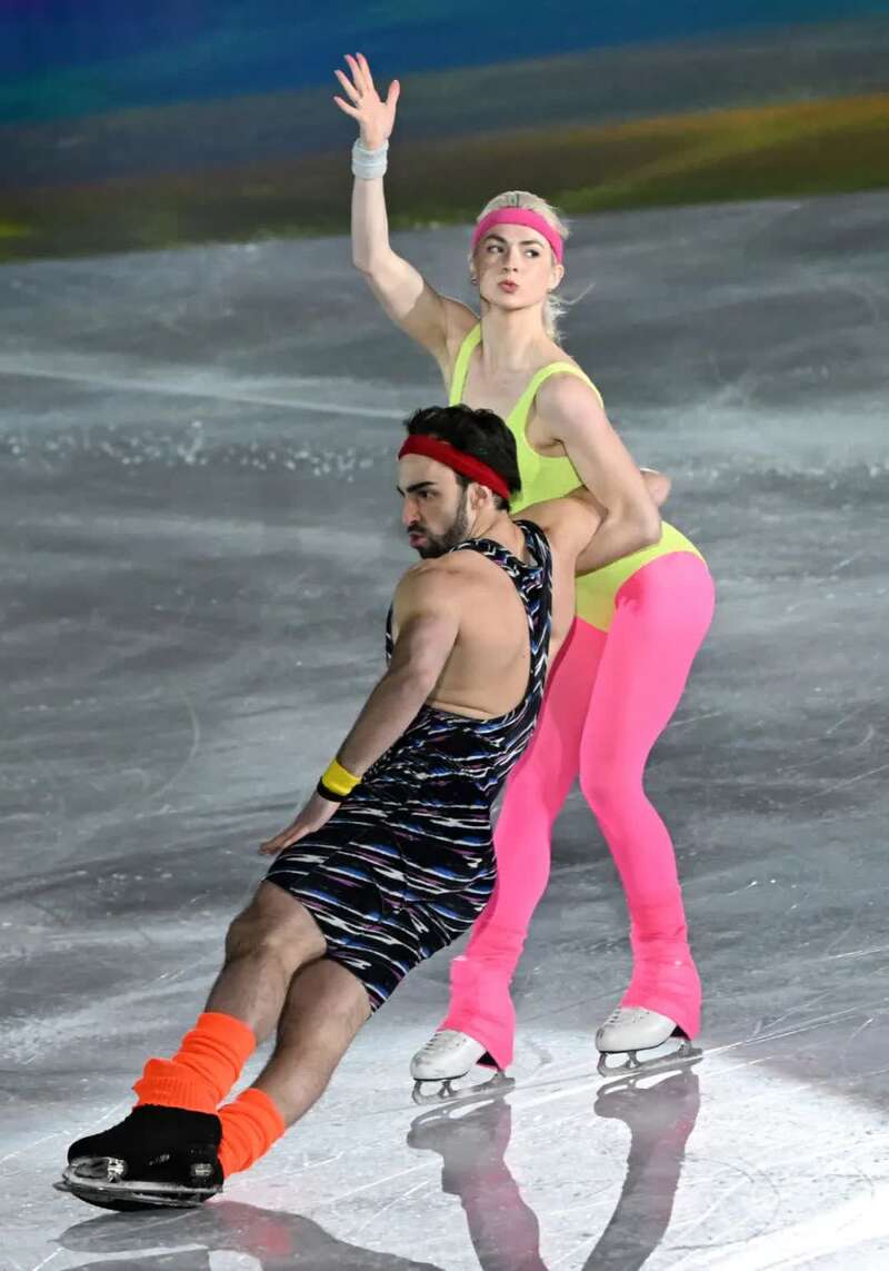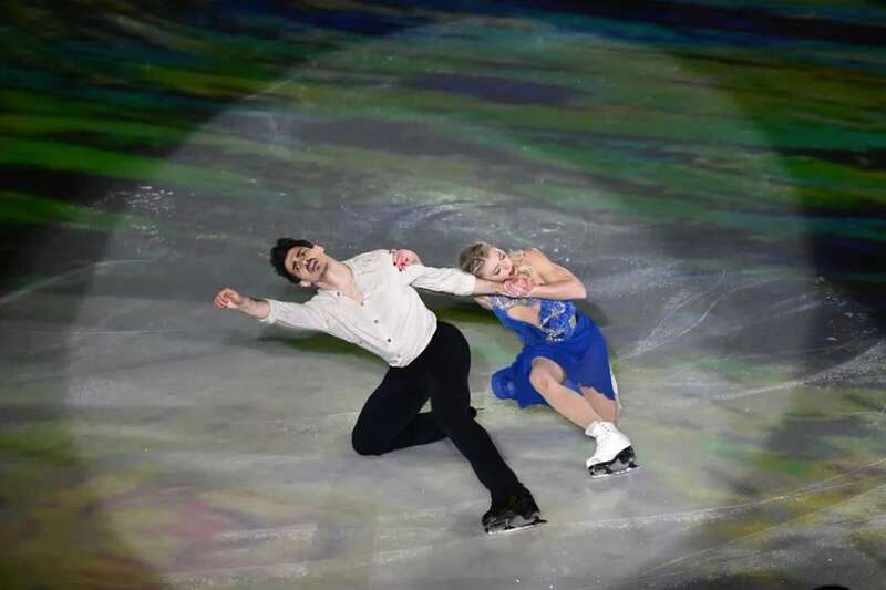 2月20日,加拿大选手派珀·吉勒斯(右)、保罗·波里尔在表演滑中。新华社记者 马宁 摄