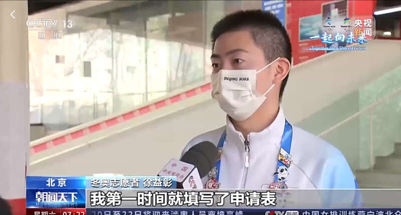 视频中,作为志愿者代表接受采访的徐益彰同学,是北京邮电大学网络空间安全学院2019级本科生。徐益彰同学通过自愿报名的形式参加了学校服务保障北京冬奥会志愿者的选拔,经过培训、实践,自2月2日起,正式服务于2022年北京冬奥会奥林匹克公园公共区赛事服务领域,主要工作是引导观众有序进入,协助观众进行身份验证。