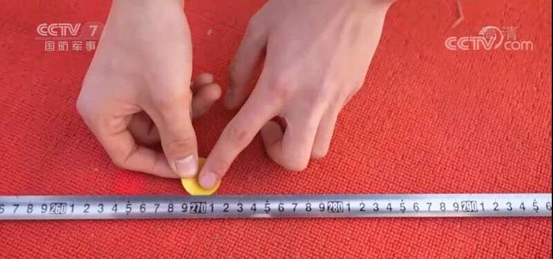 训练中,像这种角度、距离的微调每天都在变化,差一厘米都不行。每调整一次,战士们就要重新定位训练。和以往升旗任务相比,这次最大的变化是挥旗的动作,因为开幕式现场升旗台位置的朝向问题,改变了挥旗的方向。