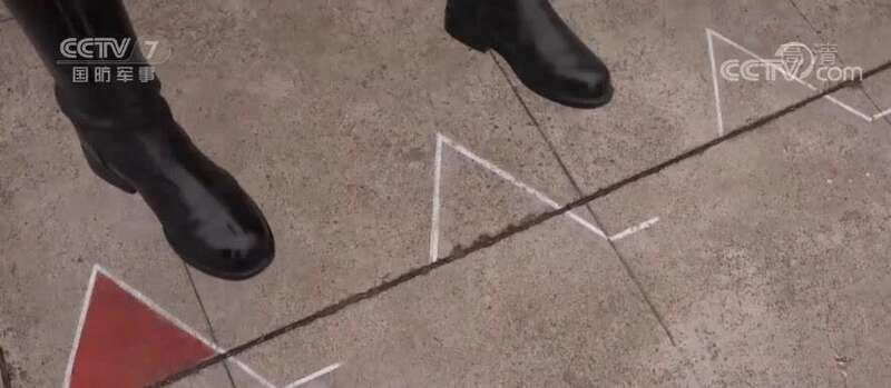 战士们正在组装的架子叫踢腿摆臂架,一高一低两条白色标线专门用来训练踢腿、摆臂两个动作,卷尺测量每个动作的角度和距离,军容镜时刻检查动作是否标准,三角标线用来规范立定动作时两脚间的夹角。训练场上随处可见的测量工具,确保每一个动作都有标准的数据。