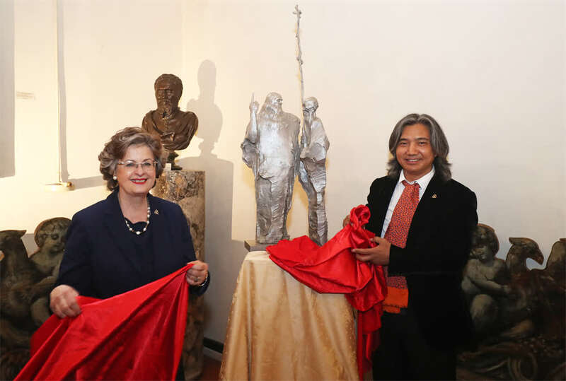 2019年5月,意大利艺术研究院院长阿琦蒂尼(Cristina Acidini)女士与中国美术馆馆长、意大利艺术研究院荣誉院士吴为山先生共同为吴为山雕塑作品《超越时空的对话——达芬奇与齐白石》揭幕,这件作品将被意大利艺术研究院永久收藏