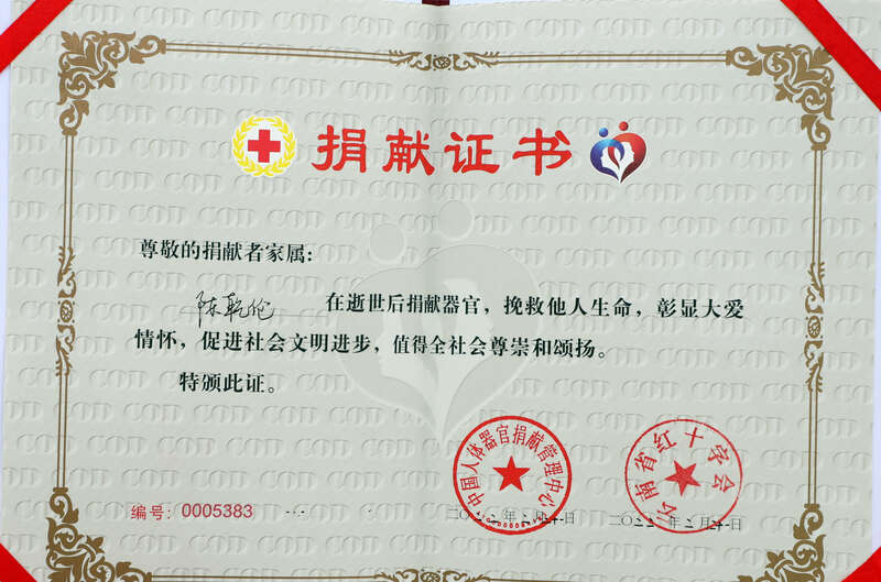 得知儿子脑死亡的情况后,陈乾伦全家悲痛不已。“医生说,他虽然脑死亡,但身体器官依然良好,可以捐献给国家人体器官捐献管理机构,用于救治需要的患者,让他的生命以另一种方式延续下去。”陈乾伦的父亲说,“既然儿子救不回来了,让他去救别人,也算有个念想,对我们来说,也是一种安慰。”