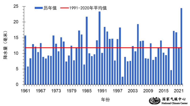 2月以来,全国平均降水量24.5毫米,较常年同期偏多1.1倍,为1961年以来历史同期最多。